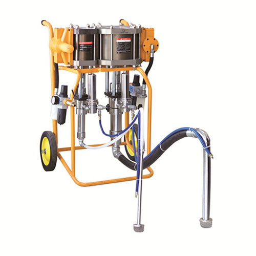 槍內混合型:1.噴槍內置混合系統,均勻混合液料。?2.A組和B組的混合比例1:4槍外混合型:1.槍外混合能噴快速固化型雙組份液料。?2.A組和B組的混合比例可機械式調整。高粘度和低粘度液料都能噴涂作業。?省漆環保型,漆霧的飛濺浪費相對很小。?槍外混合,降低了因固化導致的設備故障率。?噴多少才混多少,實現混合的零浪費。?