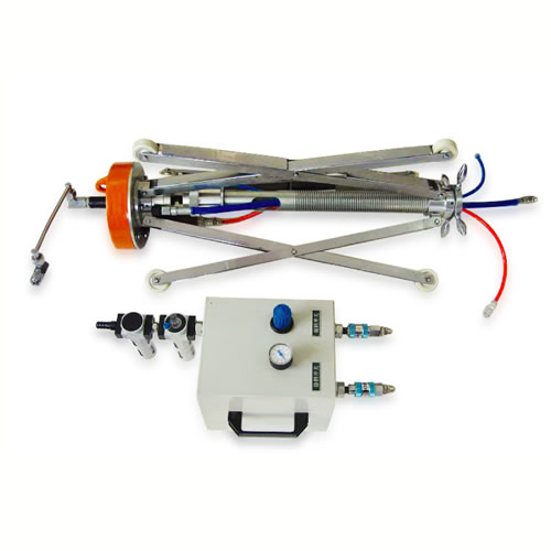 NKP-3型管道內壁噴涂器與我廠生產的無氣噴涂機配套聯合使用可以噴涂內徑Ф300-Ф1200mm的各種管道。它是利用無氣噴涂機輸送來的高壓涂料,再經內壁噴涂器沿管道內壁旋轉、移動來完成對管道內壁噴涂工作。